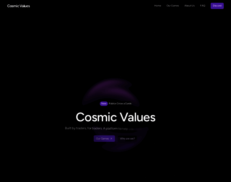 Cosmic Values is a trusted Roblox value list platform with real-time trading values for Pet Simulator, Blox Fruits, Grow a Garden, and more. Trusted by millions of players, our platform gives you the tools to make trading simpler.