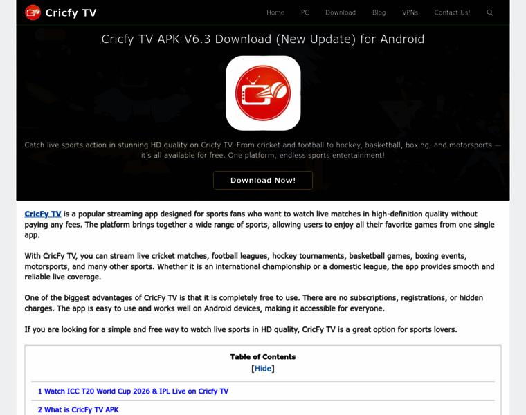 CricFy TV APK v6.3 Free download for (New Update) Android Latest 2026