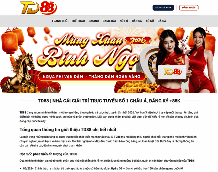 TD88 | NHÀ CÁI GIẢI TRÍ TRỰC TUYẾN SỐ 1 CHÂU Á, ĐĂNG KÝ +88K