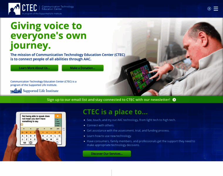 The mission of the Communication Technology Education Center (CTEC) is to connect people of all abilities through augmentative & alternative communication (AAC), so that they can give voice to their own journey.