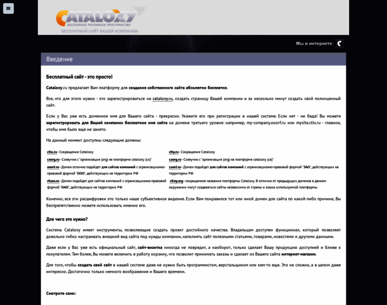 Сайт компании Cataloxy - Бесплатный сайт Вашей компании. На сайте представлена информация о компании, адреса, телефоны. Вы можете ознакомиться с полным переченем услуг.