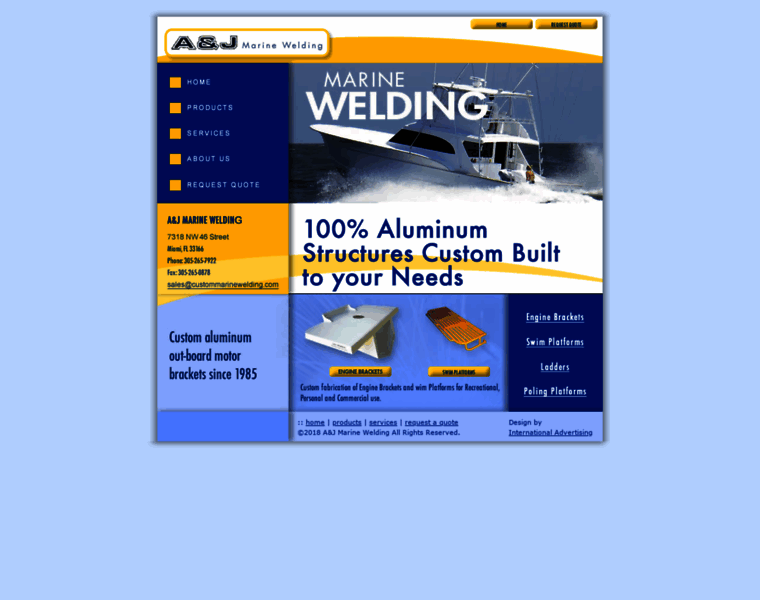 Located in Miami, Florida, A&J Marine Welding specializes in custom marine products to enhance the appearance, function and ergonomics of your fishing boat or pleasure craft. A&J Marine is quality driven, and uses the finest anodized aluminum in the industry. The highest quality stainless steel hardware is used to complete the installation. All work is tailored to our exacting standards and we guarantee our workmanship. All products are carefull...