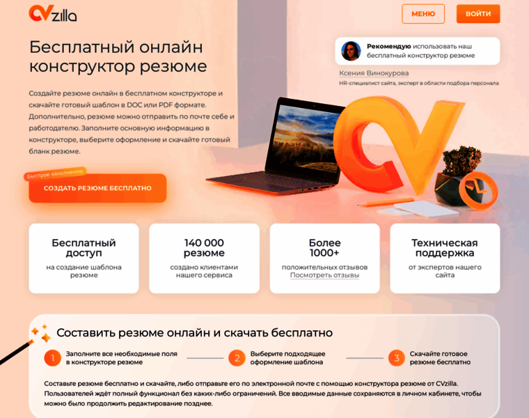 Составить резюме онлайн бесплатно - CVzilla конструктор резюме