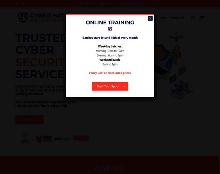 This website is hosted with Hawk Host Inc., which reserves the following IP addresses for cyberhatsolutions.com: 103.21.220.18. Moreover, DNS used with this website include ns13.hawkhost.com, ns14.hawkhost.com.