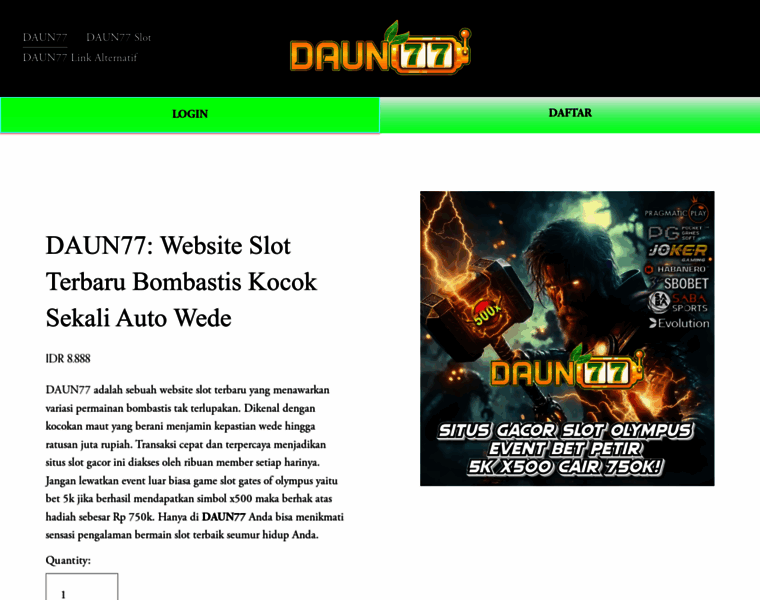 Daun77 adalah website slot terbaru yang menawarkan variasi permainan bombastis. Dengan sekali kocokan rasakan kenikmatan wede.