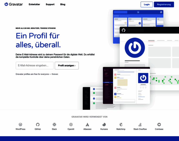 Erstelle mit Gravatar einen globalen Avatar und ein Profilbild. Hol dir eine kostenlose einseitige persönliche Website, um deine Identität zu präsentieren und dich im Internet zu vernetzen.