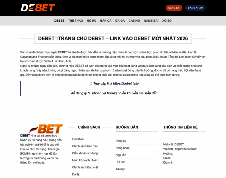 Sân chơi đánh bạc trực tuyến DEBET từ lâu đã được biết đến là thương hiệu nhà cái cá cược online hợp pháp do Isle of Man và Khu kinh tế Cagayan and Freeport