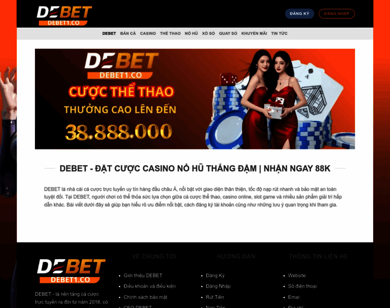 DEBET là nhà cái cá cược trực tuyến uy tín hàng đầu châu Á, nổi bật với giao diện thân thiện, tốc độ nạp rút nhanh và bảo mật an toàn tuyệt đối. Tại DEBET,