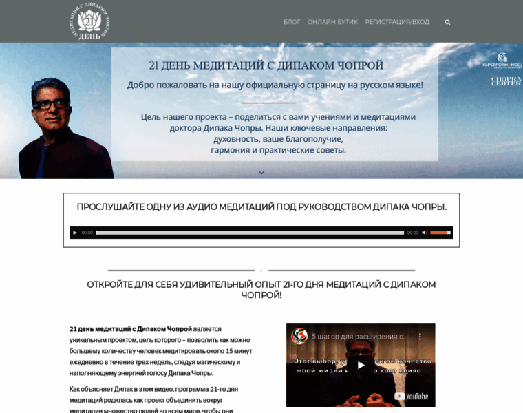 21 день медитаций с Дипаком Чопрой: участвуйте бесплатно в его первой программе на русском языке он-лайн!