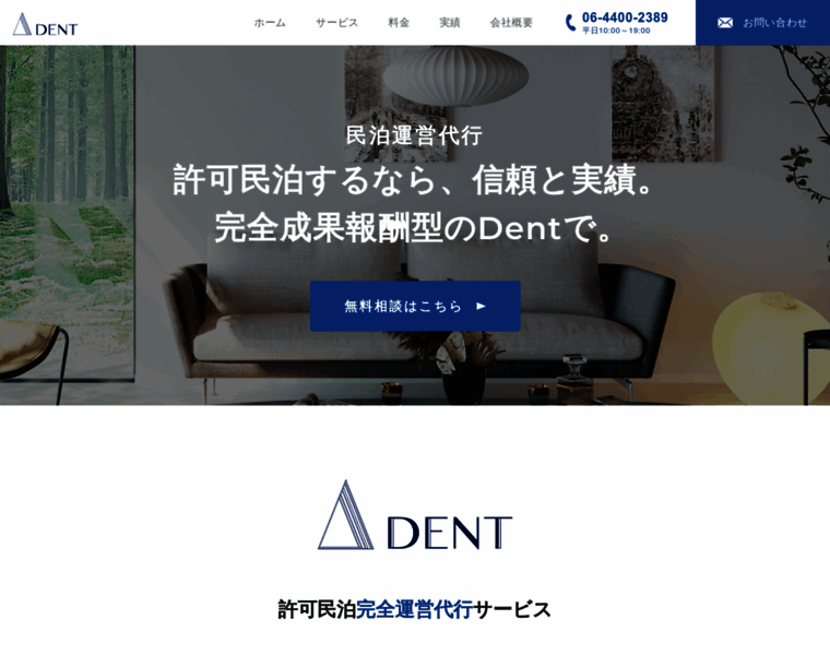東京・大阪・京都の民泊運営代行会社ならDentにお任せ下さい。民泊の平均稼働率80%以上!少数精鋭のプロチームが、民泊物件の選定から清掃手配、ゲスト対応などの民泊運営まで完全代行。確かなマーケティング力、勝てる民泊つくりで、民泊経営の収益を最大化させます。