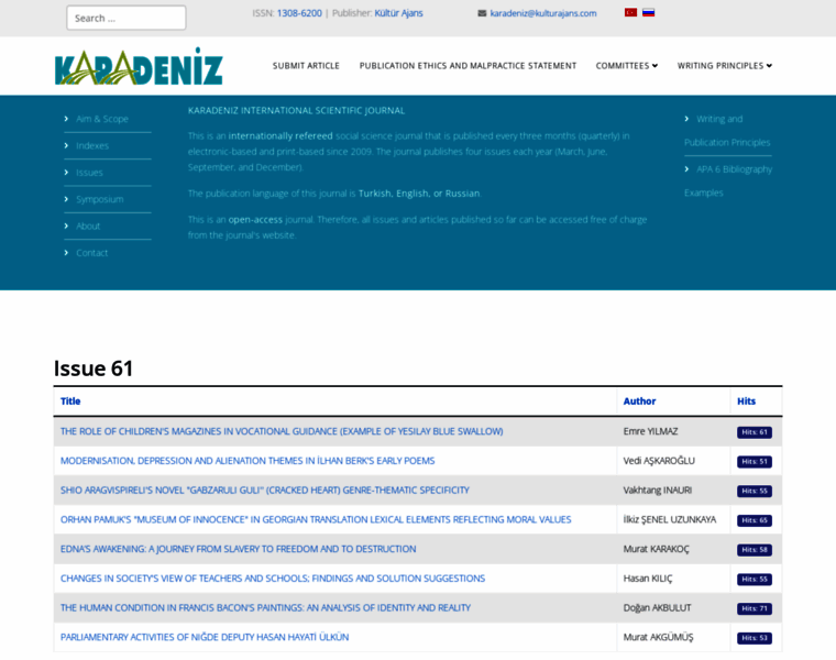Karadeniz Uluslararası Bilimsel Dergi (KDENIZ), 2009 yılından bu yana düzenli olarak yayımlanan uluslararası hakemli sosyal bilimler dergisidir. Yılda d&ou...
