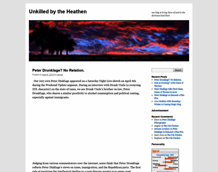 Personal blog chronicling my travels, entertainment choices, interests and hobbies. Also home to an obsessive Peter Dinklage fan page.