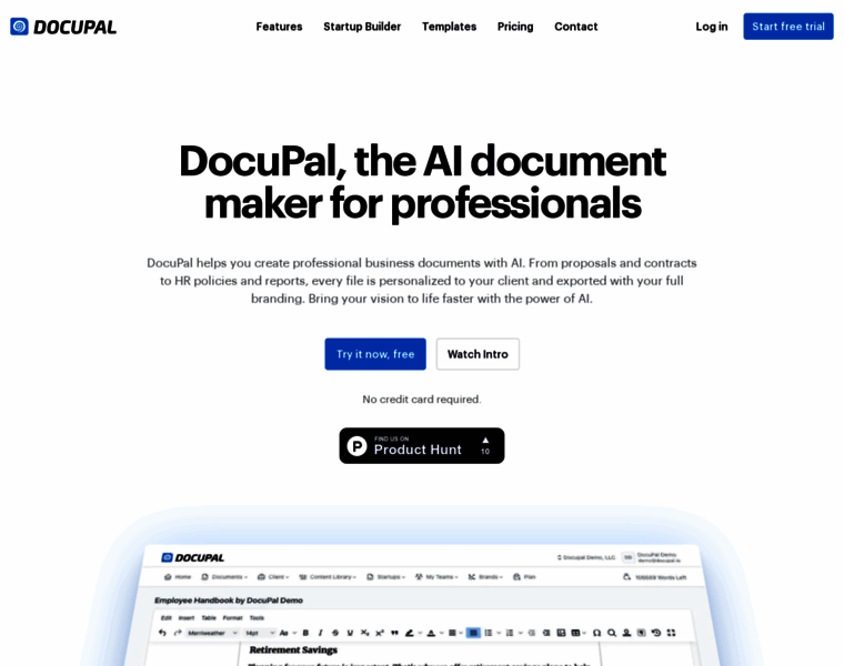 Create professional proposals, contracts, agreements, HR docs and reports with AI. Personalize for each client, export fully branded. Try DocuPal free.