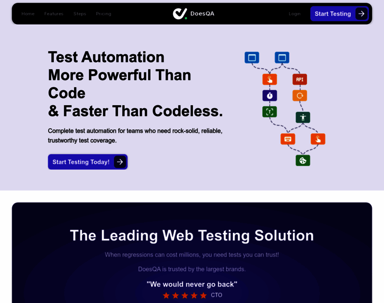 Test automation that's faster than codeless and more powerful than code. Complete test automation for teams who need rock-solid, reliable, trustworthy test coverage.