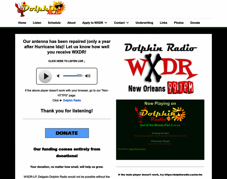 Website of the radio voice of Delgado Community College, WXDR-LP, 99.1 FM Dolphin Radio