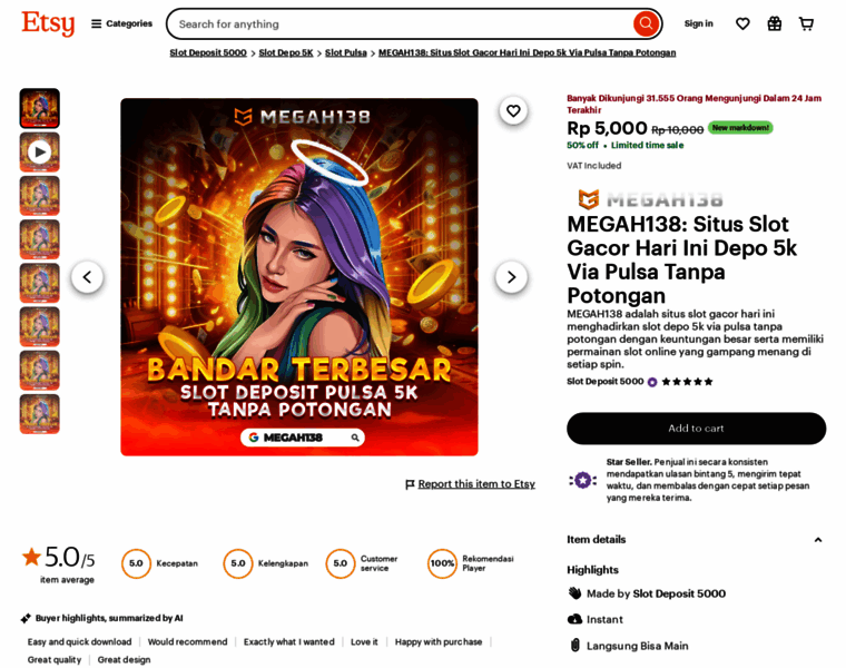 MEGAH138 adalah situs slot gacor hari ini menghadirkan slot depo 5k via pulsa tanpa potongan dengan keuntungan besar serta memiliki permainan slot online yang gampang menang di setiap spin.
