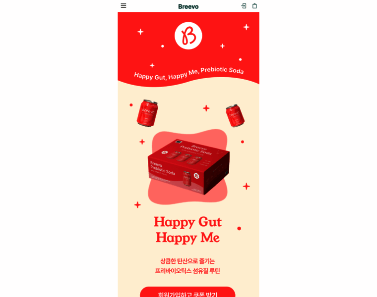 장 유익균을 위한 탄산 음료, 브리보 프리바이오틱 소다. 상큼한 제로탄산으로 장 속 유익균을 키워보세요.