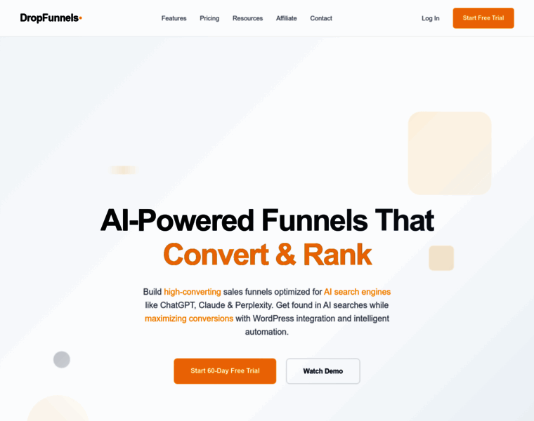 Build sales funnels & courses optimized for AI search (ChatGPT, Claude) & Google. Integrations: Mailchimp, Stripe, PayPal & NMI. Start 60-day free trial.