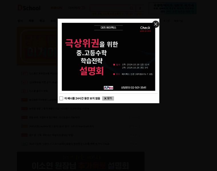 강남/서초/송파 지역의 학부모 커뮤니티, 학원강사/입시 정보의 보고 '디스쿨'입니다.