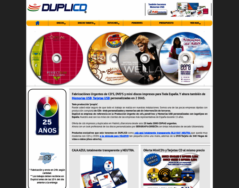 Duplicados de CD personalizados, copias de DVD, duplicación CD DVD, pendrives, memorias usb, impresión directa cd, pendrives personalizados, memorias usb, Tarjetas usb pesonalizadas, duplicats CD, duplicats DVD, usb tarjetas, cd tarjeta, mini DVD, mdlaser, desde 25 a 1000 copias. 24 H*. Impresión por serigrafía cd y dvd industrial directa UVI. Botones CD. Toda España.