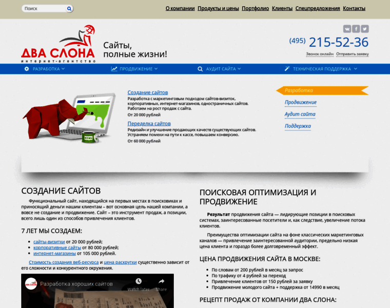 Создание сайтов в Москве, заказать разработку сайта в веб-студии — Два Слона