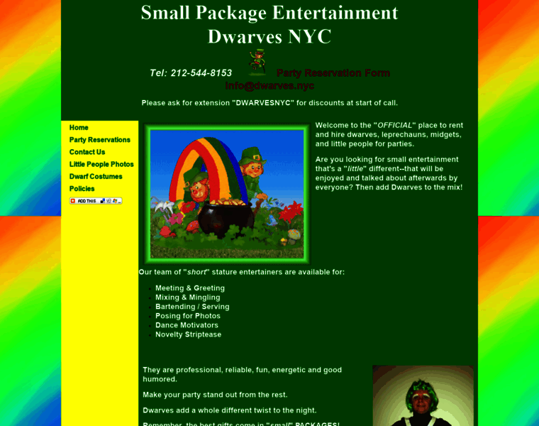Dwarves.NYC Dwarves For Hire, Leprechaun NYC, Little People New York, Midgets N.Y.C.
