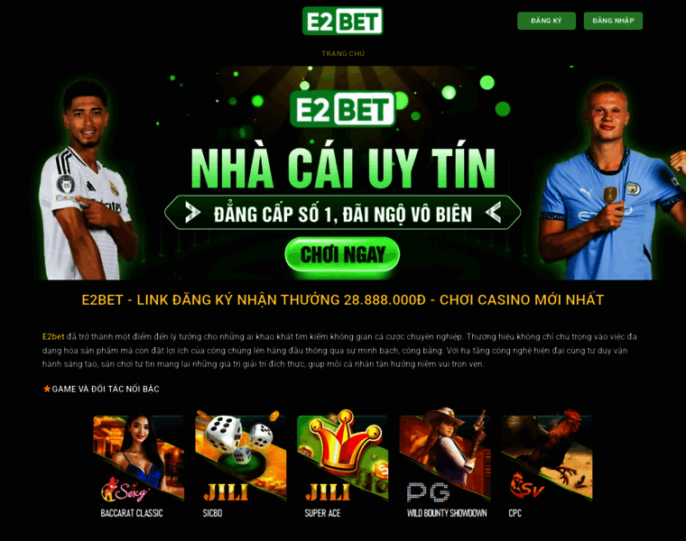 E2bet - E2bet giải trí trực tuyến uy tín hàng đầu châu Á. Trải nghiệm kho trò chơi đa dạng, hệ thống bảo mật tối tân cùng ưu đãi bùng nổ ngay hôm nay.