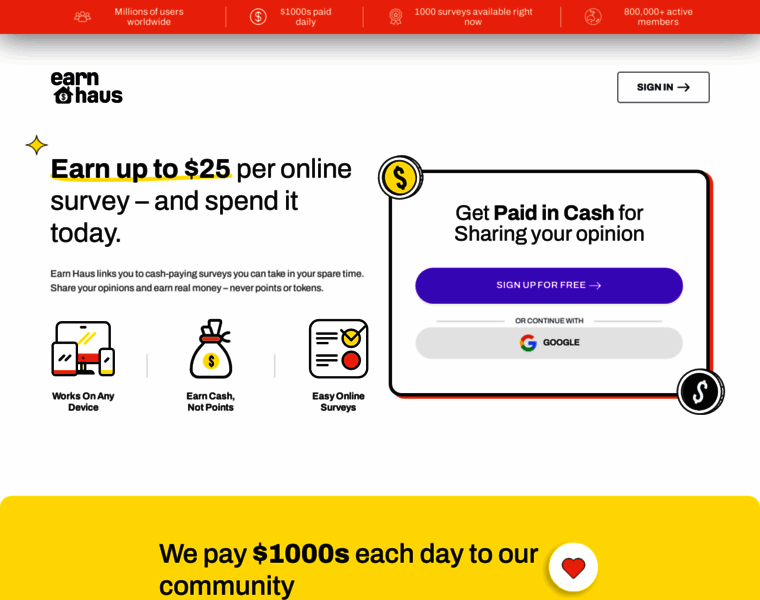 Earn Haus is a rewards platform where you can earn cash and gift cards by completing surveys, shopping online, and more. Join today and start earning rewards instantly!