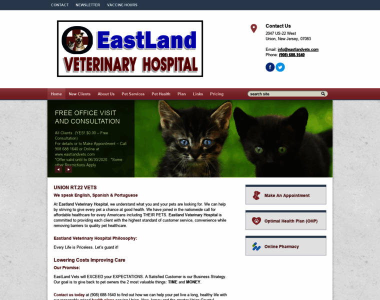 Visit Eastland Vets …. your UNION RT. 22 VETS! Walk-Ins. No Appointment Necessary. Short Wait Times. Payment Plans. Contact us at (908) 688-1640 for details.
