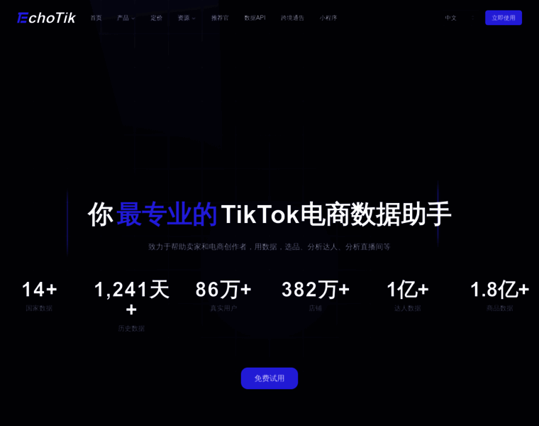 EchoTik(TikTok电商数据助手)致力于帮助卖家和电商创作者,通过数据实现智能选品、达人分析、直播间分析。