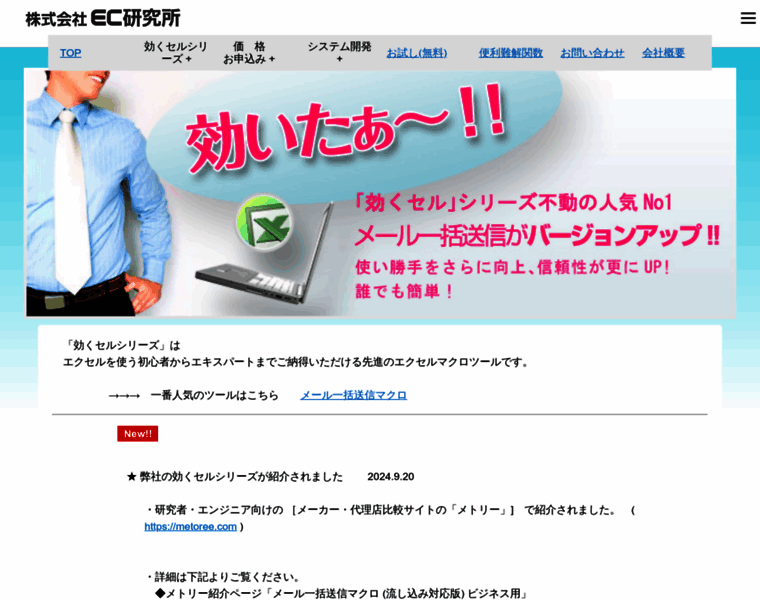 システム開発やメール一斉送信などエクセルツールやASPを多数提供するEC研究所。