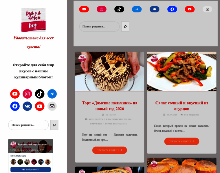 Кулинарный сайт "Еда на любой вкус" - большой выбор домашних рецептов с пошаговым фото и описанием, а также коротким видео. У вас все получится с первого раза!