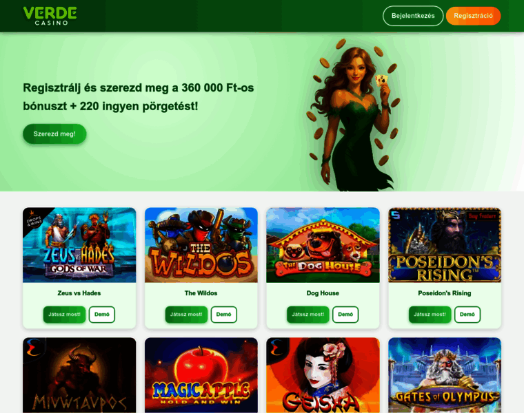 Aktiváld a Verde Casino bónuszkódot magyar játékosként! Szerezz akár 230%-os üdvözlő bónuszt, 250 ingyen pörgetést és exkluzív no deposit ajánlatokat.