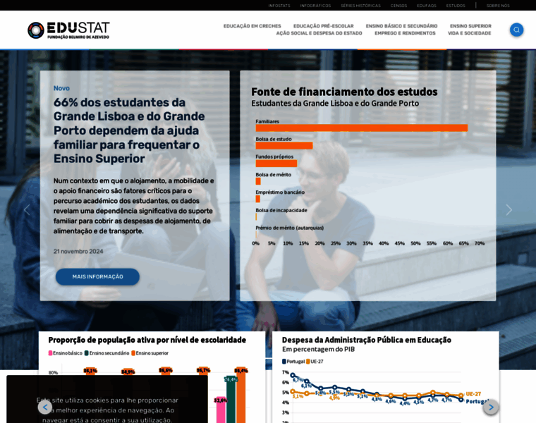 Plataforma desenvolvida pelo EDULOG da Fundação Belmiro de Azevedo com um conjunto de indicadores e métricas explanatórias que permitem o conhecimento da situação atual, tendências de evolução e principais dinâmicas estruturais do sistema de ensino português.