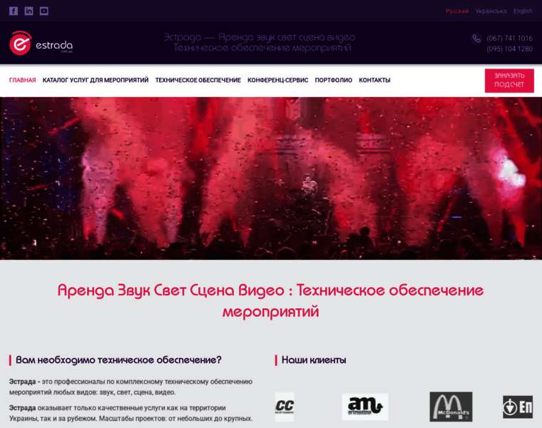 Аренда звука света сцены оборудования для мероприятий - Эстрада