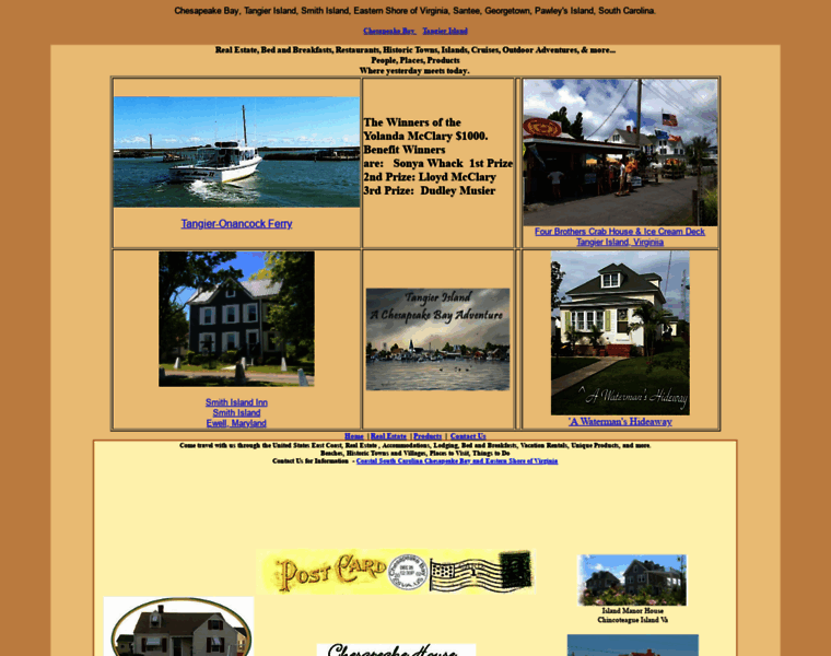 We've like to share our travels with you from the Chesapeake Bay, Tangier Island, Smith Island, through the Eastern Shore of Virginia south on I-95 to Santee, then on to Georgetown, and Pawley's Island South Carolina.Real Estate, Bed and Breakfasts, Restaurants, Historic Towns, Islands, Cruises, Outdoor Adventures, & more... People, Places, Products