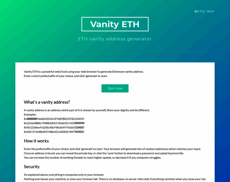 ETH Address is a blockchain web3 tool using your web browser to generate Ethereum vanity address.