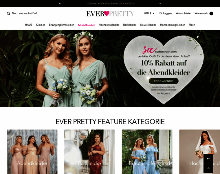 Ever-Pretty ist der Ort, an dem Sie Hunderte von wunderschönen Kleidern und erschwinglichen Kleidern in einzigartigen und modischen Styles finden. Wir sind bekannt für unsere wunderschönen Brautjungfernkleider, Abendkleider, Cocktailkleider.