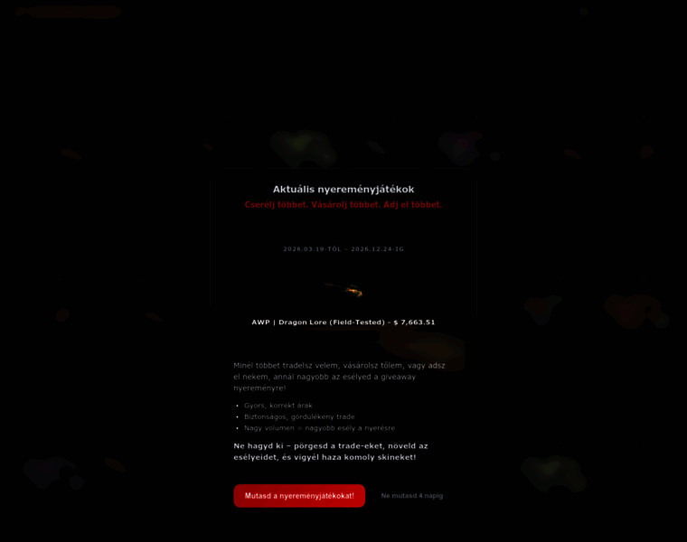 Fedezd fel Magyarország legnagyobb Counter Strike 2 trading platformját. Akár vásárolni, eladni vagy cserélni szeretnél, szolgáltatásaim zökkenőmentesek és biztonságosak.
