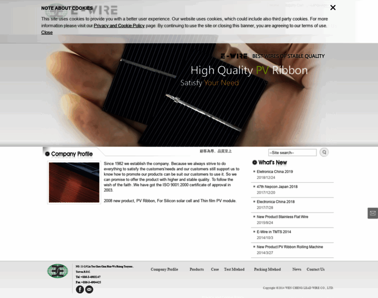 Since 1982 we establish the company. Because we always strive to do everything to satisfy the customers‘needs and our customers still support us to know how to promote our products can be suit our customers to use it. So we can promise to offer the product with higher and stable quality. To follow the wish of the faith .We have got the ISO 9001:2000 certificate of approval in 2003. 2008 new product, PV Ribbon, For Silicon solar cell and Thin fil...