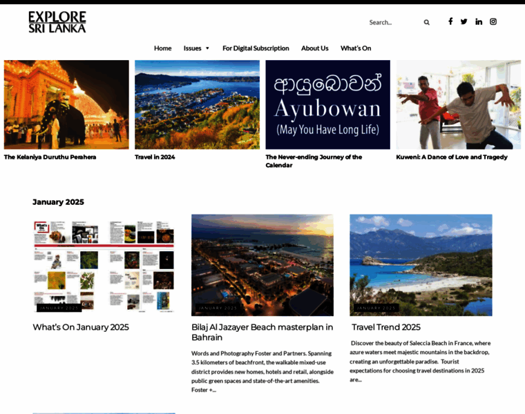 Explore Sri Lanka that began in 1987, celebrates 35 years of offering readers articles on travel destinations, off-the-beaten-track, retreats and getaways, serendipitous discoveries, cultural events, personalities and lifestyle, accompanied by captivating photography.
