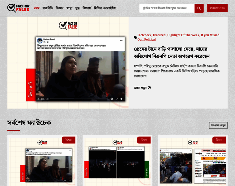 সর্বশেষ ফ্যাক্টচেক সবগুলো দেখুন ফিচার সবগুলো দেখুন ক্যাটাগরি রাজনীতি স্বাস্থ্য বিজ্ঞান যুদ্ধ ভিডিও সবগুলো দেখুন তথ্য যাচাই করতে চান? আমাদেরকে তথ্য পাঠান