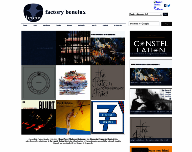 The official website of independent record label Factory Benelux, founded in Brussels and associated with Les Disques du Crépuscule