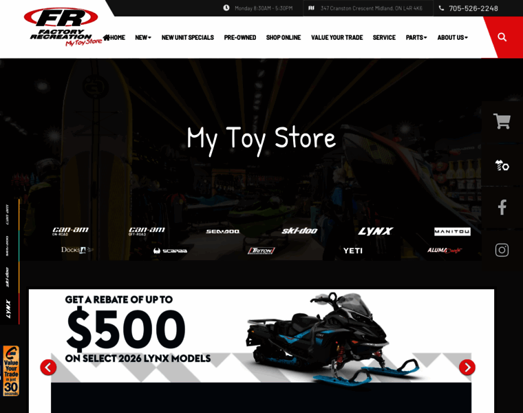 Factory Recreation | New and Preowned Powersport Vehicles for sale in Midland, ON | Top brands like Equinox, Ski-Doo, Spyder and more | Parts and servicing available