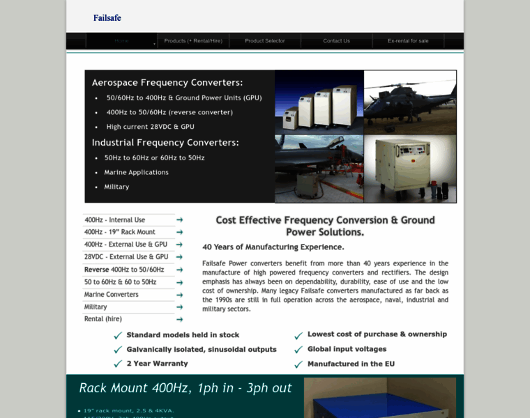 Rulix supply frequency converters, aircraft ground power, 400Hz, 28VDC.
