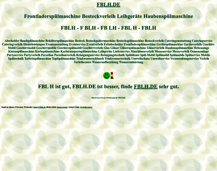 fblh, Besteckverleih, Cateringverleih, Eventverleih, Fettabscheider, Geräteverleih, Geschirr-Mobil, Geschirrmobil, Geschirrmobile, Geschirrverleih, Gläserverleih, Leihgeräte, Kistenspülmaschine, Maschinenverleih, Porzellanverleih, Reinigungsservice, Reinigungstechnik, Spüldienst, Spül-Mobil, Spülmobil, Spülmobile, Spülservice, Mobile Spültechnik, Trinkwassertechnik, Umweltschutz, Umweltservice, Veranstaltungsservice, Verleih, Wasseraufbereitung, ...