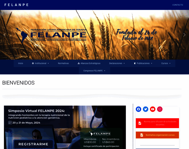 Promoviendo el conocimiento y la innovación en nutrición clínicaComprometidos con la ética y la excelencia en la terapia nutricionalInnovando en terapia nutricional: resultados que marcan la diferencia Diapositiva anterior Diapositiva siguiente Liderando la nutrición clínica desde 1988 SOBRE FELANPE 01 Comisión Directiva 03 Acta Constitutiva 01 Reglamentos 05 Estatuto Social 05 Sociedades 06 Normativas CURSOS