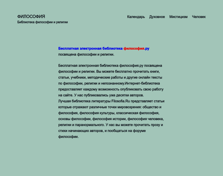 Бесплатная электронная библиотека философия.ру посвящена философии и религии. Бесплатная электронная библиотека философия.ру посвящена философии и