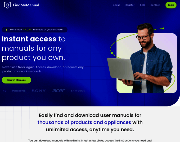 Search, find, and download user manuals for all your electronic devices. We have a library of over 25,000 manuals for brands like Samsung, Sony, Panasonic, and Acer.