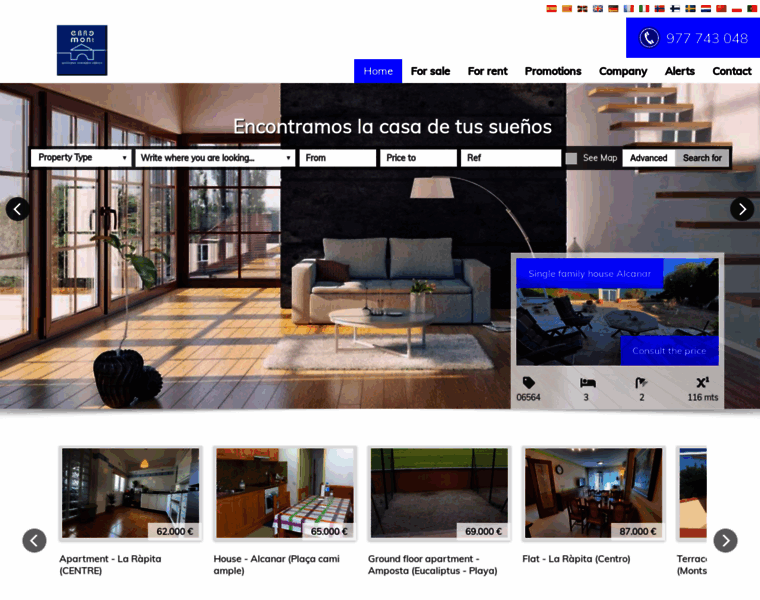 FINQUES EBRE MONT con multitud de propiedades, pisos , chalet , casas, villas en todas las zonas y localidades, incluyendo toda la provincia de Tarragona